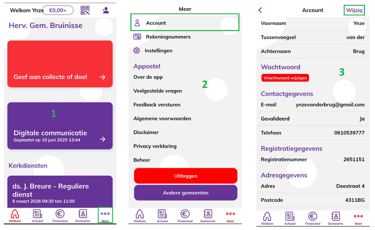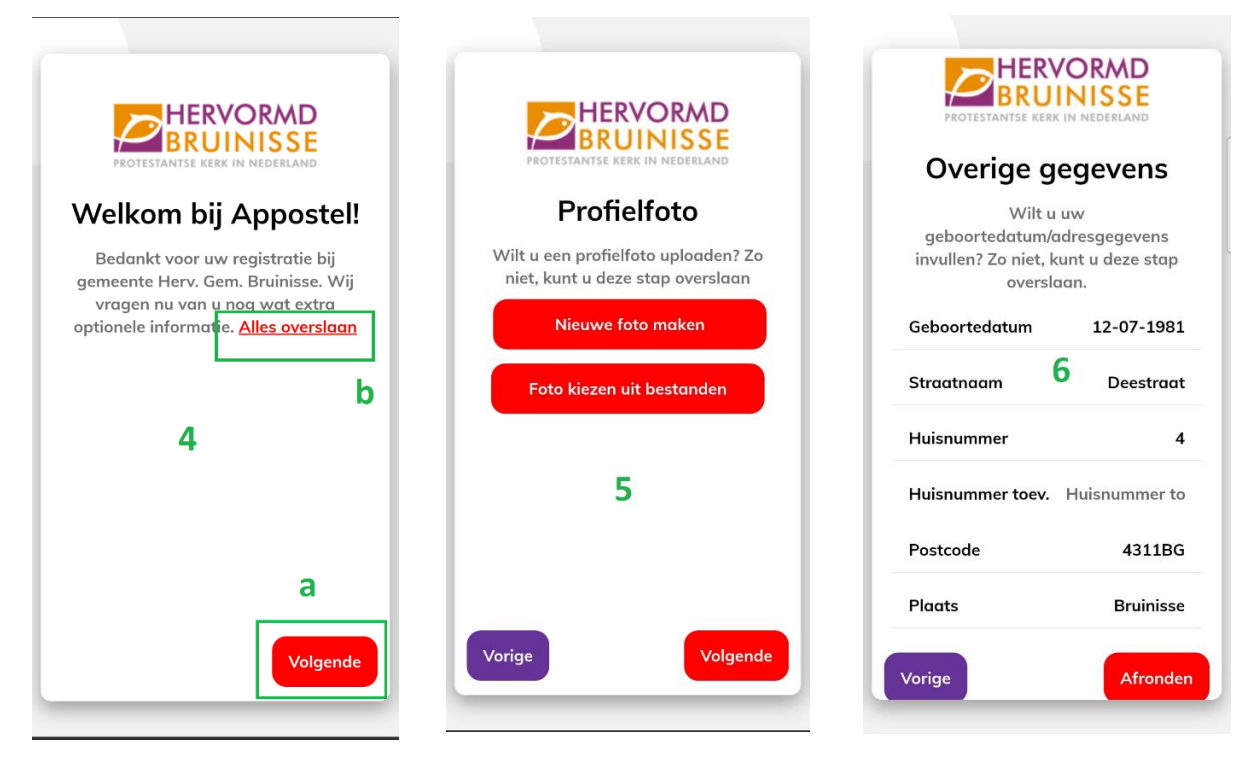 - (b) Hier kunt u aangeven of u wel of niet in de contactenlijst van de gemeente wilt staan. Dat betekent dat andere gemeenteleden u contactgegevens kunnen zien via de Appostel app.