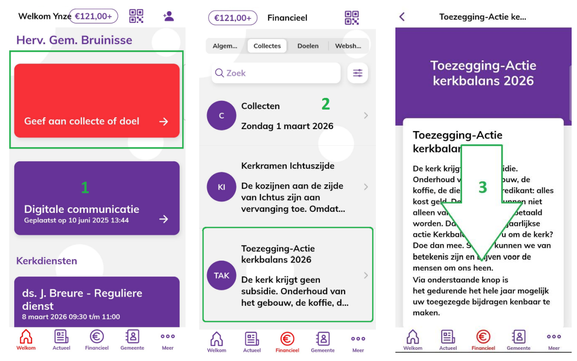 - (1) Ga naar “Geef aan collecte of doel”